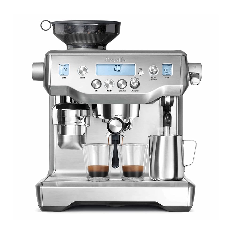 Die Breville Oracle BES980XL ist eine außergewöhnliche halbautomatische Espressomaschine mit integriertem Mahlwerk, automatischer Tampung und Milchaufschäumung. Mit Dual-Boiler-System, PID-Temperaturkontrolle und volldigitalem Interface bietet sie Barista-Qualität für dein Zuhause – schnell, präzise und vielseitig.Wichtige Merkmale: