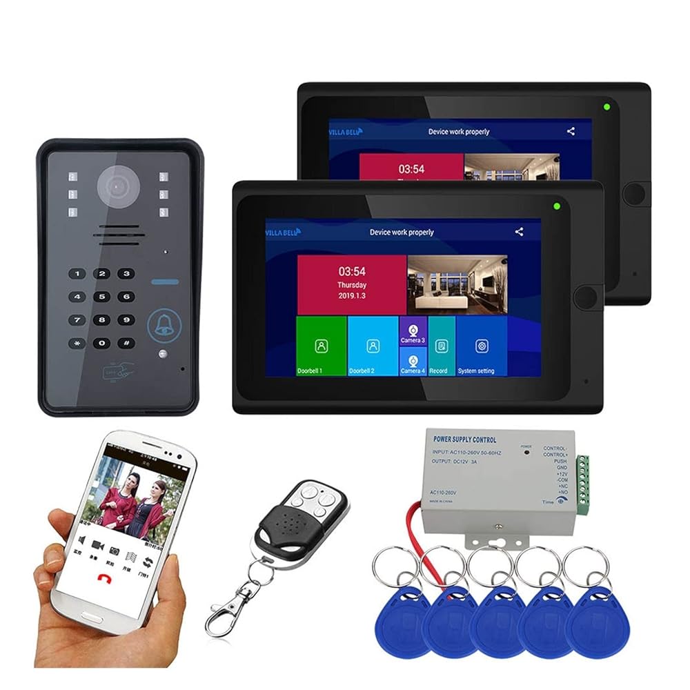 Dieses smarte Video-Türsprechanlagen-Set mit zwei 7-Zoll-Monitoren bietet maximale Sicherheit und Komfort für Ihr Zuhause. Mit 1080P HD-Kamera, Nachtsicht, Passwort- & RFID-Zugang sowie kabelloser Verbindung ist es ideal für moderne Eingänge und anspruchsvolle Nutzer.Hauptmerkmale: