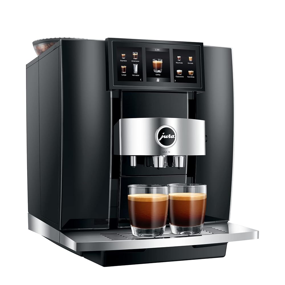 Der Jura GIGA 10 Diamond Black ist ein Premium-Kaffeevollautomat mit doppeltem Bohnenbehälter, zwei keramischen Mahlwerken und revolutionärer Cold‑Brew‑Funktion. Mit dem Panorama Touch‑Display an der Front bringt er Barista-Qualität und Café‑Vielfalt direkt in deine Küche .