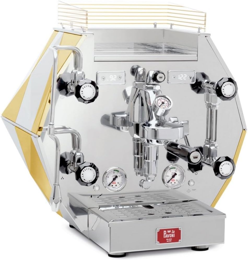 Die La Pavoni Diamantina Home-Pro ist eine halbprofessionelle Espressomaschine für höchste Ansprüche. Mit ihrem eleganten Edelstahl- und Gold-Design bietet sie nicht nur optisch ein Highlight, sondern liefert auch konstant perfekte Ergebnisse dank modernster Technik. Sie ist ideal für anspruchsvolle Kaffeeliebhaber, die zuhause oder im kleinen Büro höchsten Barista-Genuss erwarten.